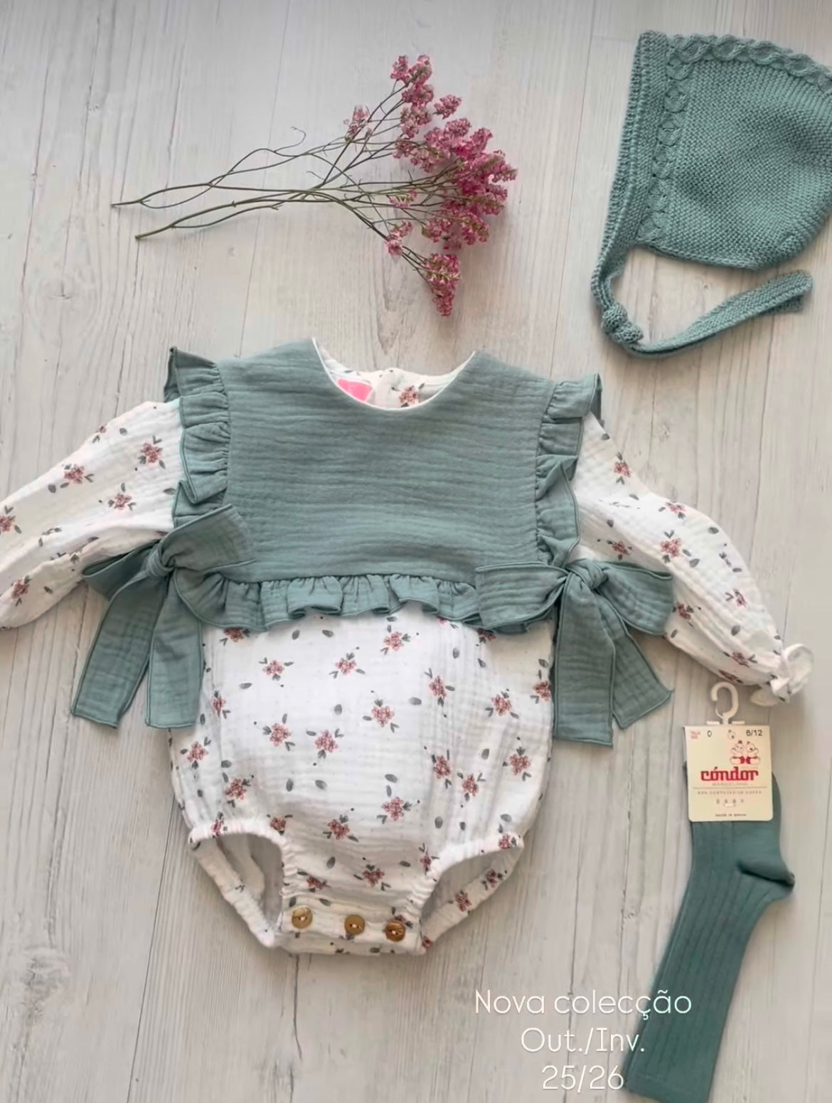 Abertura total nas costas e entre pernas para facilitar a muda da fralda.