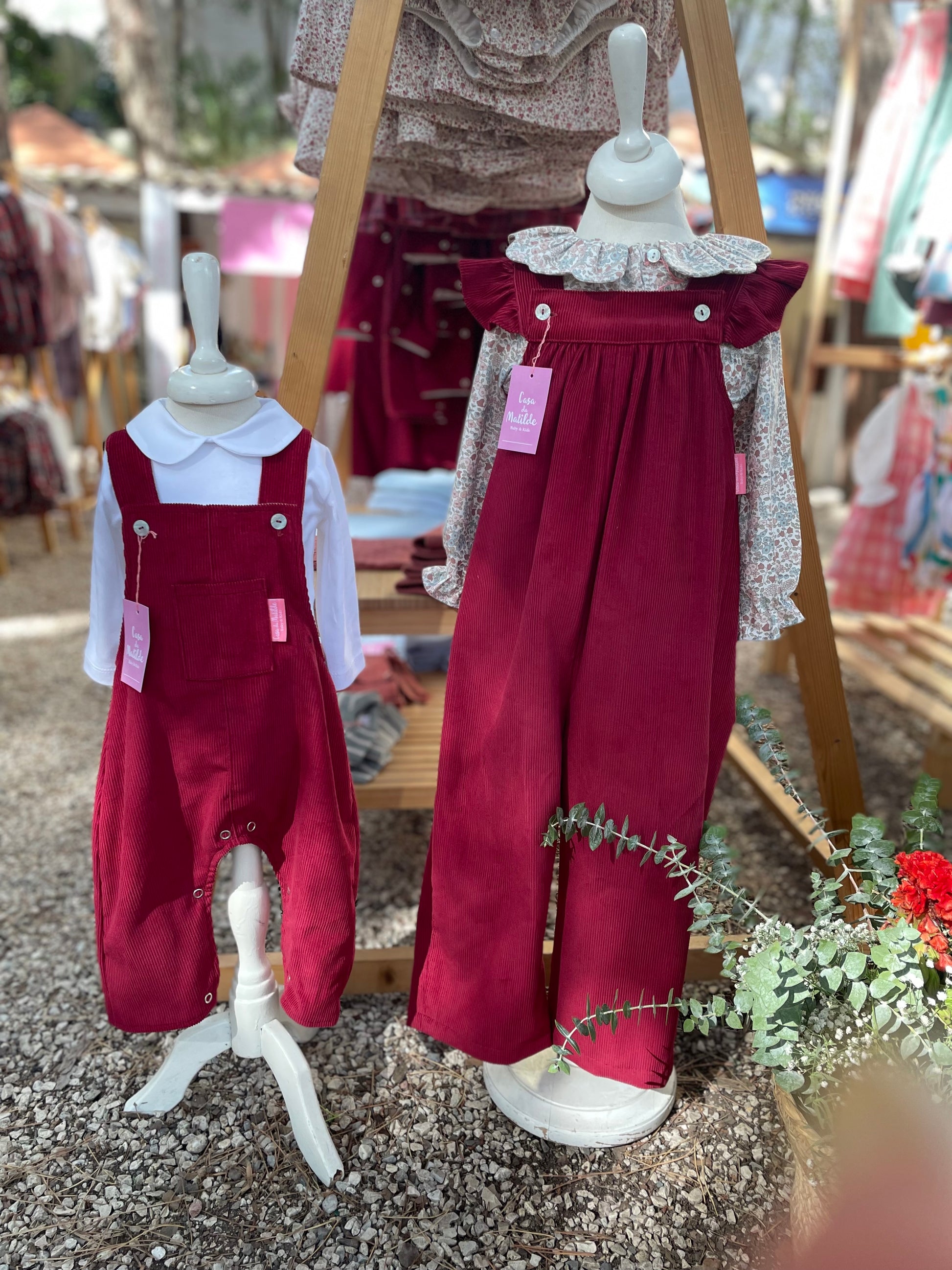 Jardineira bordeaux unissexo